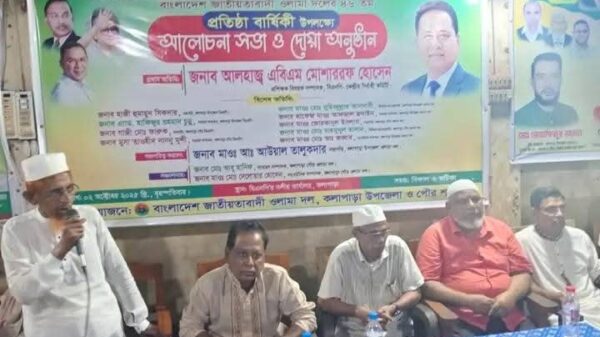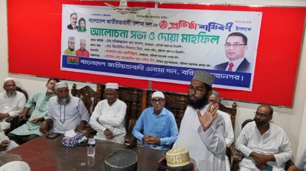 বাংলাদেশ জাতীয়তাবাদী শ্রমিকদল বরিশাল মহানগর শাখার বিপ্লবী আহবায়ক জুলাই যোদ্ধা রাজপথের অকুতোভয় সাহসী সৈনিক মোঃ ফয়েজ আহমেদ খানের নেতৃত্বে বরিশাল মহানগর বিএনপির আহবায়ক মনিরুজ্জামান খান ফারুক , বরিশাল মহানগর বিএনপির সদস্য সচিব জিয়াউদ্দিন সিকদার জিয়া , বরিশাল মহানগর শ্রমিকদলের সদস্য সচিব মোঃ শহিদুল ইসলাম সিকদার , বরিশাল মহানগর শ্রমিকদলের যুগ্ম আহবায়কবৃন্দ সহ পশ্চিমাঞ্চল বিদ্যুৎ বিতরণ শ্রমিক কর্মচারী ইউনিয়ন রেজিঃ নং বি ২১৪০ এর নেতৃবৃন্দ উপস্থিত থেকে আয়োজিত দোয়া মুনাজাতে অংশগ্রহণ করেন ৷