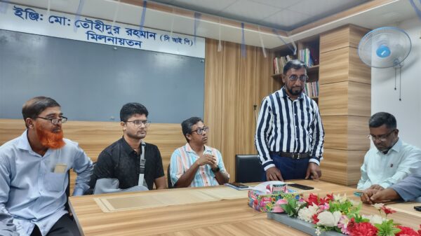 শিক্ষক সমিতির সাধারণ সম্পাদক খন্দকার মাইনুল ইসলাম, সিনিয়র সহ সভাপতি আল এমরান হারুন, সহ সভাপতি মাহাবু উল্লাহ লিটন, সাইদুর রহমান সোহেল, যুগ্ম সাধারণ সম্পাদক মোয়াজ্জেম হোসেন, নুরুল হকসহ নেতৃবৃন্দ।
